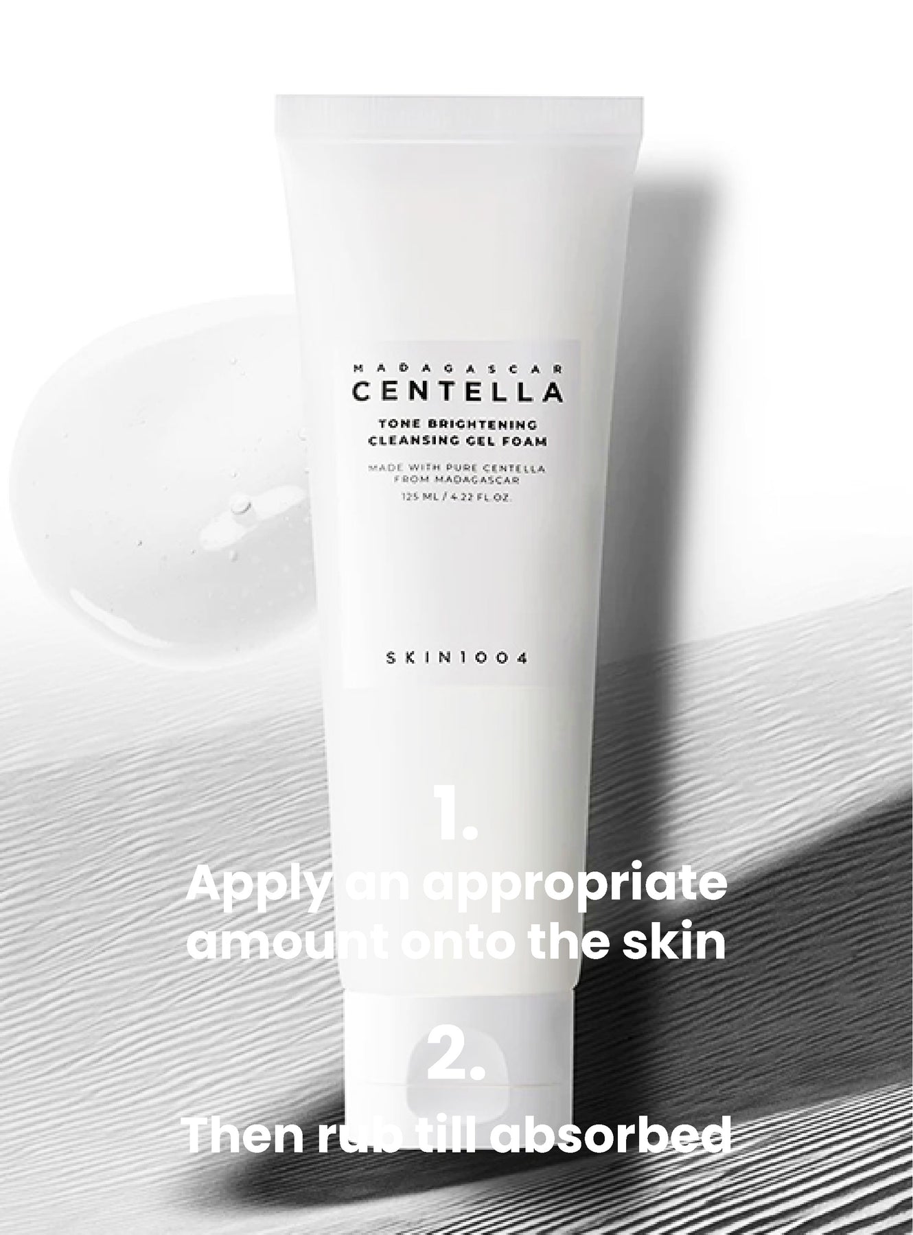 Aqua (Water), Lauryl Hydroxysultaine, Glycerin, Potassium Cocoyl Glycinate, Disodium Cocoamphodiacetate, Sodium Chloride, Potassium Cocoate, Sodium Lauroyl Glutamate, Centella Asiatica Extract (41%), Vitis Vinifera (Grape) Fruit Extract, Pyrus Malus (Apple) Fruit Extract, Carica Papaya (Papaya) Fruit Extract, Prunus Mume Fruit Extract, Madecassoside, Niacinamide, 3‑O‑Ethyl Ascorbic Acid, Panthenol, Xylitylglucoside, Anhydroxylitol, Xylitol, Trehalose, Citric Acid, Agave Tequilana Leaf Extract, Glucose, Caprylic/Capric Triglyceride, Butylene Glycol, 1,2‑Hexanediol, Acrylates/C10‑30 Alkyl Acrylate Crosspolymer, Hexylene Glycol, Pentylene Glycol, Ethylhexylglycerin, Potassium Benzoate, Disodium EDTA.
